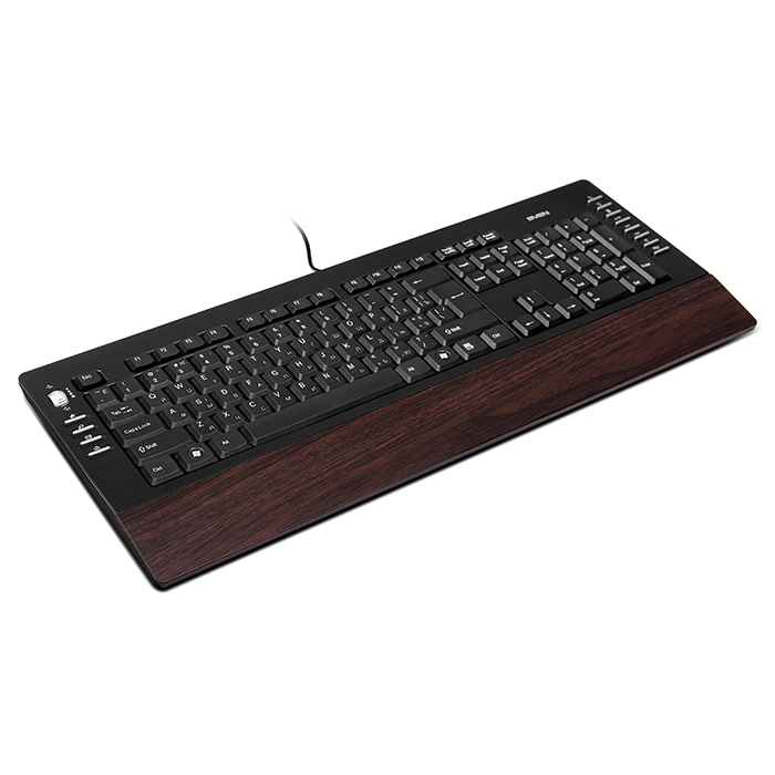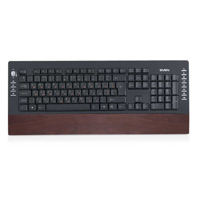 SVEN Comfort 4200 USB Wooden Вы работаете копирайтером, и начальство потребовало статью на 10 листов к завтрашнему утру? Вы – студент последнего курса, и Вам предстоит за неделю написать диплом? Что ж, не стоит терять времени – к делу! Помимо выносливости и огромной работоспособности, Вам в данном случае потребуются литры энергетика, недюжинное вдохновение и, конечно же, надежная клавиатура, способная выдержать тысячи нажатий. Ведь текст рождается не за одну минуту. Необходимо не только придумать идею, но и подобрать нужные слова, а это значит – удалять фразы или целые абзацы, печатать вновь и вновь. Компания SVEN представила клавиатуру из серии Сomfort для тех, кто много времени проводит за компьютером. Тонкая конструкция, высококачественная мембрана, приятная наощупь прорезиненная поверхность – модель SVEN Comfort 4200 создана для того, чтобы уменьшать нагрузку на руки. В устройстве предусмотрена подставка для запястий рук. Смотрится она очень стильно за счет своего исполнения - под дерево или под карбон. Буквы на печатной раскладке имеют приятный охристый окрас. Если сомневаетесь в термине или хотите найти больше информации о теме – нажмите клавишу быстрого вызова браузера, расположенную слева от рабочей зоны клавиатуры. Домашняя интернет-страница запустится самостоятельно без обращения к соответствующей иконке на рабочем столе монитора и дополнительных манипуляций с мышкой. Кстати, прокручивать страницы сайтов можно и с помощью клавиатуры. В левом верхнем углу специально для этих целей предусмотрено колесо прокрутки. Модель имеет также клавиши быстрого доступа к Мультимедиа (запуск проигрывателя, уменьшить / увеличить громкость, MUTE, воспроизведение / пауза) и офисным приложениям. Они расположены справа от рабочей зоны клавиатуры. Ну, а если воображение разыгралось, и работа затянулась до глубокой ночи? Вы не помешаете своим домочадцам спокойно спать и видеть сладкие сны даже в 5 часов утра. Пониженный уровень шума делает нажатие кнопок практически бесшумным. SVEN Comfort 4200 – это стильная мультимедийная клавиатура как для деловых, так и творческих людей! Тип мультимедийная Технология связи проводная Совместимость с ОС Windows XP/Vista/7/8 Раскладка клавиатуры Рус/Eng Раскладка кириллицы Windows Количество клавиш 117 Количество клавиш быстрого доступа 12 Клавиши управления питанием есть Клавиша Enter L-образная Клавиша Backspace стандартная Клавиша Space прямоугольная Цвет букв кириллицы красный Контакты клавиш мембранные с тактильной обратной связью Интерфейс USB Наработка на отказ, нажатий свыше 20 000 000 Соответствие стандартам FCC, CE Размеры изделия, мм 485 x 15 x 200 Вес, г 905 Цвет черный-дерево