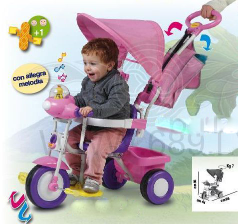 Велосипед "Baby Plus" с сумкой Tрехколесный велосипед "Baby Plus" Cтраховочный бампер, ремень безопасности и складные подножки защитят Вашего малыша во время движения. Металлическая рама, поворотная ручка управления с регулировкой по высоте, пластиковые колёса с резиновым ободом делают управление велосипедом лёгким и надёжным. В комплекте: корзина для мелочей, солнцезащитный козырёк, музыкальная панель и сумочка для мамы Цвета: розовый, голубой