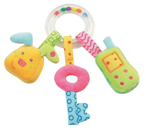 Погремушка Телефон и Ключ Погремушка "Телефон и Ключ" из серии "Первые развивающие игрушки". Мягкая велюровая ткань и негромкие звуки тренируют первые сенсорные навыки, слух и зрение. Можно стирать в стиральной машине.