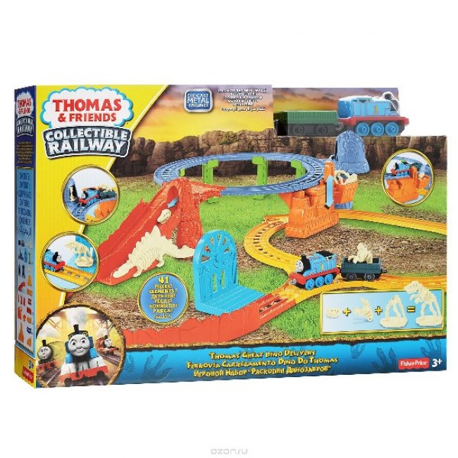 Детский набор Mattel Thomas: Set cu Dinozaur CDV09 Если Ваш ребенок обожает смотреть мультфильм о паровозике Томасе и его друзьях, то ему несомненно будет приятно получить в подарок этот набор. В нем есть и сам герой, а также яркие декорации для игры с ним. Причем по сюжету комплекта, паровозик работает на раскопках и перевозит скелеты доисторических динозавров в своём прицепе. Его главным помощником в этом деле станет удобный погрузчик, который без труда поднимет части динозавров с одного уровня на другой. Тип железная Серия Thomas and Friends Возраст ребенка от 3 лет Пол унисекс Материал металл/пластмасс Производитель Mattel