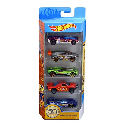 Mattel HW Set 5 "50th Anniversary" Hot Wheels Машинки "50-летний юбилей" (в асс) По случаю своего 50-летнего юбилея Hot Wheels выпустил лимитированную серию премиальных машинок с логотипом юбилея, объединенных в наборы из 5 штук. Взрослые и маленькие поклонники бренда оценят уникальное реалистичное исполнение и крутой дизайн каждой машинки из набора. Коллекционеры смогут собрать свою любимую тематическую коллекцию и устраивать соревнования с друзьями. Все машинки в наборе разработаны под игровые треки от Hot Wheels. Комплект: 5 машинок Размеры: 24 х 10 х 4 см Рекомендуемый возраст: от 3 лет