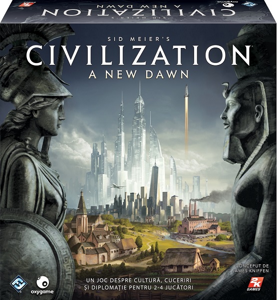 CUTIA Civilization: A New Dawn Настольная игра "Цивилизация - Новый рассвет" (рум) Для течения времени человечество не имеет никакого значения, поэтому в каждом народе появляются лидеры, чья цель проста - работать ради лучшего будущего и создать что-то Великое, что будет существовать веками. Скромное происхождение этих личностей не мешает им развиваться и создавать великие нации. И теперь у Вас есть шанс стать одним из этих лидеров! Комплектация: Правила игры, 44 пластиковые фигурки, 8 планшетов предводителей, 16 фрагментов игрового поля, 1 диск событий, 4 счётчика технологий, 4 линейки действий, 2 шестигранных кубика, 80 карт действий, 16 карт городов-государств, 16 карт дипломатии, 24 карты чудес света, 5 карт победы, 240 жетонов. Количество игроков: 2 - 4 Рекомендуемый возраст: 14 лет +
