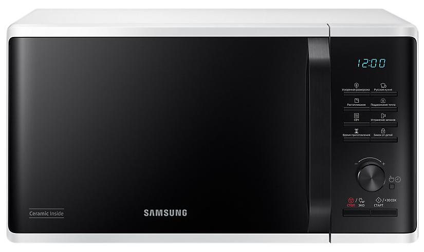 Микроволновая печь Samsung MS23K3515AW отдельно стоящая микроволновая печь объем 23 л мощность 800 Вт электронное управление тактовые и кнопочное переключатели дисплей система равномерного распределения микроволн защита от детей