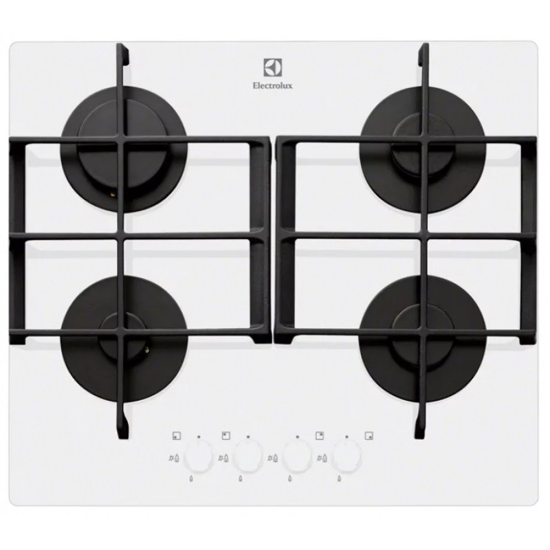Варочная панель Electrolux EGT 6342YOW газовая варочная панель поверхность из закаленного стекла 4 газовые конфорки переключатели поворотные электроподжиг независимая установка габариты (ШхГ) 59x52 см