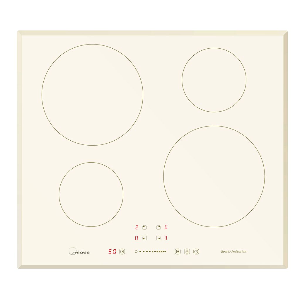 Варочная панель Midea MIH64721FRI Индукционная варочная поверхность - Серия Retro, ширина 60 см, 4 индукционные зоны, функция Booster, сенсорное управление Slider Control, 9 уровней мощности, таймер, индикаторы остаточного тепла, функция "Защита детей", стеклокерамика, цвет - слоновая кость, цвет графики - бронза, дизайн рамки - 4 скошенных края Габариты прибора, В*Ш*Г(мм) 57 х 590 х 520 Дизайн Retro Дизайн окантовки скошенные края по периметру Дисплей да Защита от перегрева да Защитное отключение да Индикаторы остаточного тепла да Материал поверхности стеклокерамика SCHOTT CERAN® (Германия) Позиций нагрева 9 Производитель (Торговая Марка) Midea Система принудительного охлаждения да Таймер на каждую зону до 99 мин Тип варочной панели Индукционная Тип управления слайдерное Установка независимая Функция мгновенного нагрева Booster да Цвет слоновая кость
