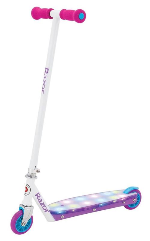 Самокат Razor 13073062 Scooter Party Pop - Purple 23L Преврати жизнь в вечеринку с совершенно новым мерцающим Party Pop. Встань на подножку, чтобы включить мерцающие разноцветные огоньки и катайся с удовольствием, отталкиваясь от земли, в сопровождении светового шоу на колесах. Характеристики: Стальная рулевая колонка и дека Ручки из вспененного поролона Уретановые колеса Полипропиленовая дека с 12-тью разноцветными LED-огоньками Запатентованный задний тормоз-крыло Два литиевых аккумулятора CR2032 (включены и заменимы) Страна-производитель товара Китай Возраст 6 лет- 14 лет Максимальная нагрузка 65 кг Складная конструкция Без cкладной конструкции Тип Обычный Колеса 98 мм Тормоза Задний тормоз-крыло Дополнительные характеристики Стальная рулевая колонка и дека Ручки из вспененного поролона Полипропиленовая дека с 12-тью разноцветными LED-огоньками Размеры 63.5 x 12.7 x 27.94 см Вес 3.3 кг