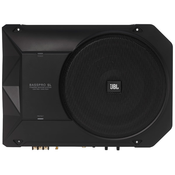 Автомобильный сабвуфер корпусной JBL BassPro SL сабвуфер типоразмер: 20 см (8 дюйм.) номинальная мощность 125 Вт тип корпуса: закрытый ящик встроенный усилитель диапазон частот 35 - 120 Гц