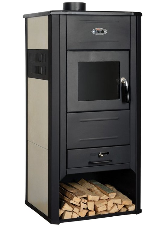 Камин Mirano H Ferroli Тип продукта камин Тип топлива дрова Тип зажигания стандарт использование жилой материал Сталь цвет черный Объем помещения 120 м.куб Ширина 49 см Высота 105 см Глубина 46 см Вес 98 кг Мощность 22 кВ