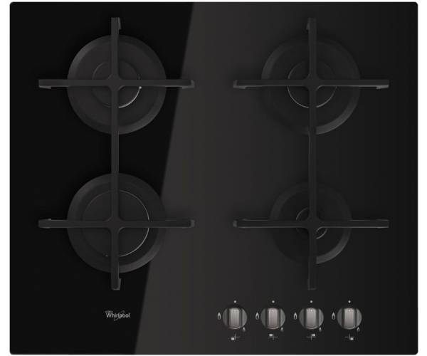 Варочная панель Whirlpool GOS 6413/NB Black газовая варочная панель поверхность из закаленного стекла 4 газовые конфорки переключатели поворотные электроподжиг независимая установка габариты (ШхГ) 59x51 см