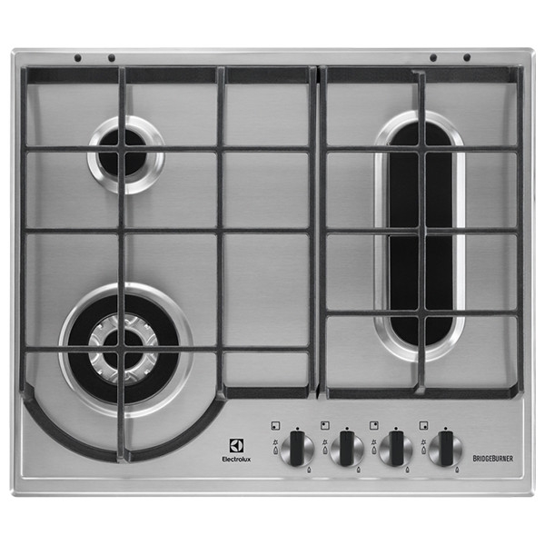 Варочная панель Electrolux EGH6349BOX газовая варочная панель поверхность из нержавеющей стали 4 газовые конфорки конфорка с овальной зоной нагрева трехконтурная конфорка переключатели поворотные электроподжиг независимая установка габариты (ШхГ) 59.4x51 см