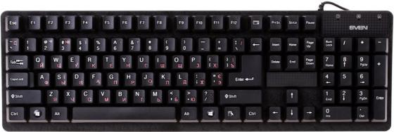 Клавиатура Sven 301 Standart USB black проводная клавиатура интерфейс USB для настольного компьютера классическая конструкция, мембранная клавиш: 105 размеры (ШxВxГ): 436x25x136 мм вес: 410 г