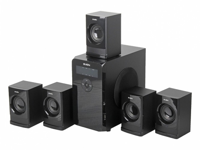 Комплект акустики 5.1 Sven HT-200 Black система 5.1 усилитель мощности суммарная мощность 80 Вт материал корпуса колонок MDF пульт ДУ