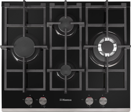Варочная панель Hansa BHKS65135 Black газовая варочная панель поверхность из закаленного стекла 4 газовые конфорки трехконтурная конфорка переключатели поворотные электроподжиг независимая установка габариты (ШхГ) 60.4x52 см