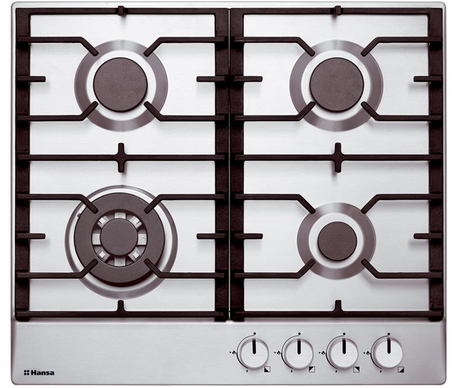 Варочная панель Hansa BHGI61139 Silver газовая варочная панель поверхность из нержавеющей стали 4 газовые конфорки трехконтурная конфорка переключатели поворотные электроподжиг независимая установка габариты (ШхГ) 59x52 см