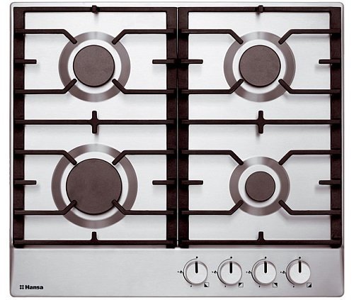 Варочная панель Hansa BHGI61039 Silver газовая варочная панель поверхность из нержавеющей стали 4 газовые конфорки переключатели поворотные электроподжиг независимая установка габариты (ШхГ) 59x52 см