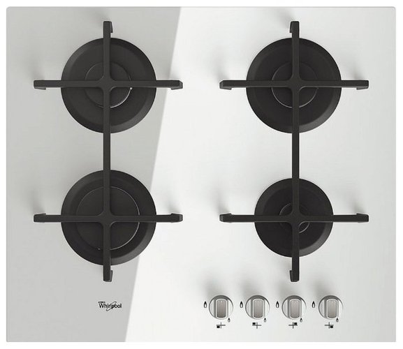 Варочная панель Whirlpool GOS 6413/WH Black газовая варочная панель поверхность из закаленного стекла 4 газовые конфорки переключатели поворотные электроподжиг независимая установка габариты (ШхГ) 59x51 см