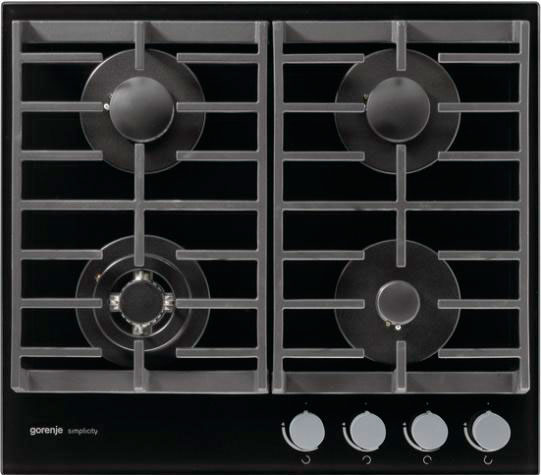 Варочная панель Gorenje GT 6 SY2B газовая варочная панель поверхность из закаленного стекла 4 газовые конфорки трехконтурная конфорка переключатели поворотные электроподжиг независимая установка габариты (ШхГ) 58.5x51 см