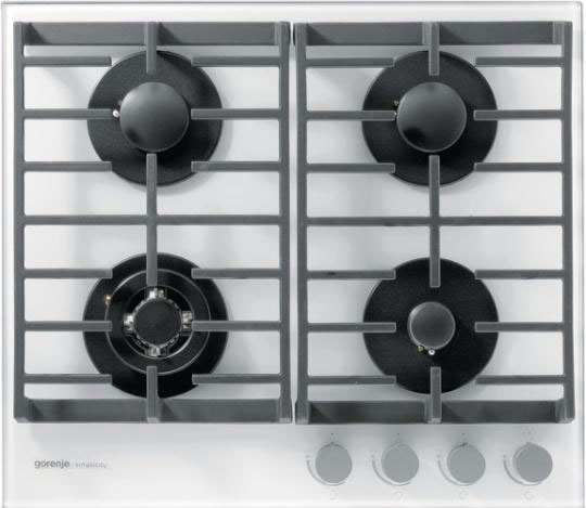 Варочная панель Gorenje GT 6 SY2W газовая варочная панель поверхность из закаленного стекла 4 газовые конфорки трехконтурная конфорка переключатели поворотные электроподжиг независимая установка габариты (ШхГ) 58.5x51 см