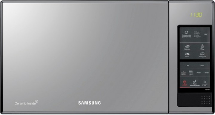 Микроволновая печь Samsung ME83XR/BWT, black glass Объем камеры, л: 23 Диаметр поворотного стола, см: 28,8 Внутреннее покрытие: биокерамика Тип управления: электронный Мощность микроволн, Вт: 850 Цвет: чёрный Размеры (ШхВхГ), см: 49x28x38 Доп. особенности: Био-керамичсекое покрытие