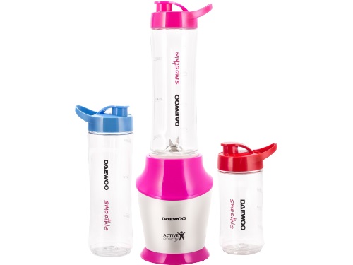 Блендер Daewoo DS 3503 Производитель:Daewoo Модель:DS3503 Тип:Блендер стационарный Мощность:350Вт Ёмкость:0.6л Управление:Механический Количество скоростей:1 Прочее:2 бутылки на 600 мл и 1 на 400 мл Цвет:Белый - розовый Материал чаши:Пластик Материал ножа:Металл