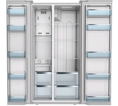 Холодильник Side-by-Side Midea SBS689 B GLASS Общий объем 510 л Объем холодильной камеры 335 л Объем морозильной камеры 175 л Размораживание холодильной камеры No Frost Размораживание морозильной камеры No Frost Тип Side-by-Side Количество компрессоров 1 Количество дверей 2 Класс энергопотребления A+ Управление Механическое Расположение морозильной камеры Side-by-Side (боковое) Цвет Нержавеющая сталь Дисплей Да Cтеклянные полки Да Подставка для бутылок Да Хладагент R600a Высота 180 см Ширина 90 см Глубина 70 см