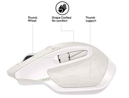 Мышь Logitech MX Master 2S Light Grey Bluetooth беспроводная мышь для правой руки интерфейс Bluetooth для ноутбука светодиодная, 7 клавиш разрешение сенсора мыши 4000 dpi размеры (ШxВxД): 86x48x126 мм вес: 145 г