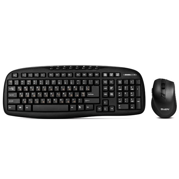 Клавиатура и мышь SVEN KB-C3600W Black USB беспроводные клавиатура и мышь интерфейс USB для настольного компьютера классическая клавиатура, мембранная клавиш: 112, дополнительных: 8 светодиодная мышь, 5 клавиш разрешение сенсора мыши 1600 dpi