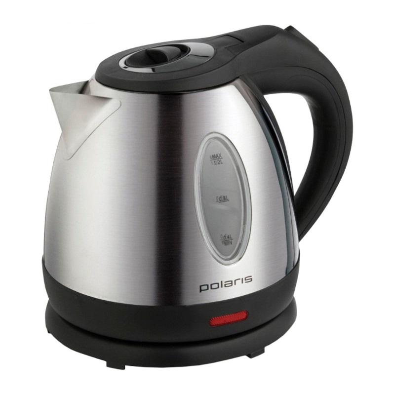 Электрочайник Polaris PWK1284CA, inox black объем 1.2 л мощность 1680 Вт индикация включения закрытая спираль установка на подставку в любом положении стальной корпус