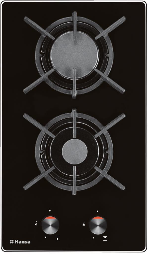 Варочная панель Hansa BHKS31038 газовая варочная панель поверхность из закаленного стекла 2 газовые конфорки переключатели поворотные электроподжиг независимая установка габариты (ШхГ) 30x52 см
