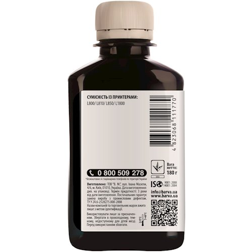 Чернила Barva Epson L800/810/850/1800 (T6731) black 180 gr Тип на основе красителя (водорастворимые) Вид совместимый Цвет black (черный) Емкость 180 мл