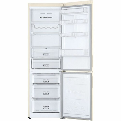 Холодильник с нижней морозильной камерой Samsung RB34N5440EF Двухкамерный холодильник SAMSUNG RB34N5440EF/UA с полезным объемом 344 л создаст наилучшие условия для продолжительного хранения пищевых продуктов. В нем установлен инверторный двигатель, что отличается длительным сроком службы, тихой работой и экономным расходом электроэнергии. За год устройство потребляет 314 кВт.ч электричества, за что получило класс A+. Уровень шума прибора не превышает 38 дБ, благодаря чему его работа не помешает вашему отдыху и не отвлечет от важных дел. В холодильнике SAMSUNG используется современная система разморозки No Frost. Она поддерживает оптимальную температуру внутри камер, предотвращая появление льда. Кроме того, вам не потребуется тратить драгоценное время и силы для размораживания холодильника. Примененная технология All-around Cooling отвечает за равномерное распределение холодного воздуха и поддержание заданной температуры в каждом уголке рабочей камеры. Благодаря этому продукты дольше сохраняют свою свежесть и аромат. Полезного объема холодильной камеры 246 л достаточно для загрузки большого количества продуктов. Данное отделение оборудовано 3 стеклянными полками, на которых удобно размещать лотки и кастрюли с едой. Для хранения небольших баночек с соусами, консервов, пакетов с соком и прочего предусмотрено 6 дверных карманов. Подставка для бутылок и контейнер для овощей и фруктов также входят в комплект. В морозильной камере вы сможете заморозить до 12 кг пищи за сутки. Ее внутреннее пространство разделено на 3 отделения, в которых удобно хранить мясо, птицу, рыбу, морепродукты и полуфабрикаты. Благодаря режиму быстрой заморозки продукты не подвергаются сильному промерзанию, сохраняют изначальный вкус и целостность. SAMSUNG RB34N5440EF/UA, выполненный в стильном бежевом цвете, гармонично дополнит интерьер вашей кухни. Габаритные размеры холодильника составляют 192 х 60 х 68 см. При необходимости дверцы устройства можно перенавесить на левую сторону. Наличие LED-подсветки позволит легко найти и достать нужный продукт. Вся важная информация выводится на дисплей, расположенный на внешней стороне дверцы. Стабильная и бесперебойная работа холодильника реализуется за счет защиты от перепадов напряжения. Тип холодильника двухкамерный Морозильная камера нижнее расположение Общий объем 355 л Общий полезный объем 344 л Полезный объем холодильной камеры 246 л Полезный объем морозильной камеры 98 л Класс энергопотребления A+ Потребление электроэнергии в год 314 кВт.ч/Год Уровень шума 38 дБ Количество компрессоров 1 Хладагент R600a Производительность замораживания в сутки 12 кг Размораживание холодильной камеры No Frost Размораживание морозильной камеры No Frost Управление сенсорное Освещение LED Количество полок в холодильной камере 3 Материал полок в холодильной камере стеклянные Количество дверных карманов холодильной камеры 6
