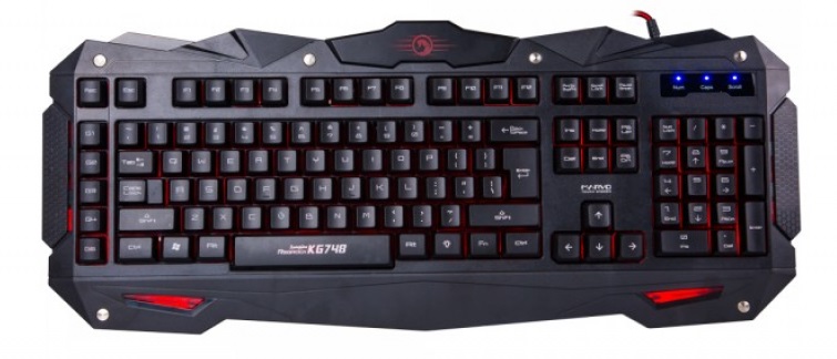 Игровая клавиатура MARVO KG748, Gaming Lighting Keyboard, 110 keys, 5 programmable keys, 26 anti-gosting keys, 3 color lightings both on backlight and typeface, breathing light mode, USB, Black Производитель MARVO Модель KG748 Тип клавиатуры проводная Тип клавиатуры Мембранная Количество клавиш 110 Мультимедийные клавиши 5 Подсветка клавиш есть Водозащита – Подключение USB