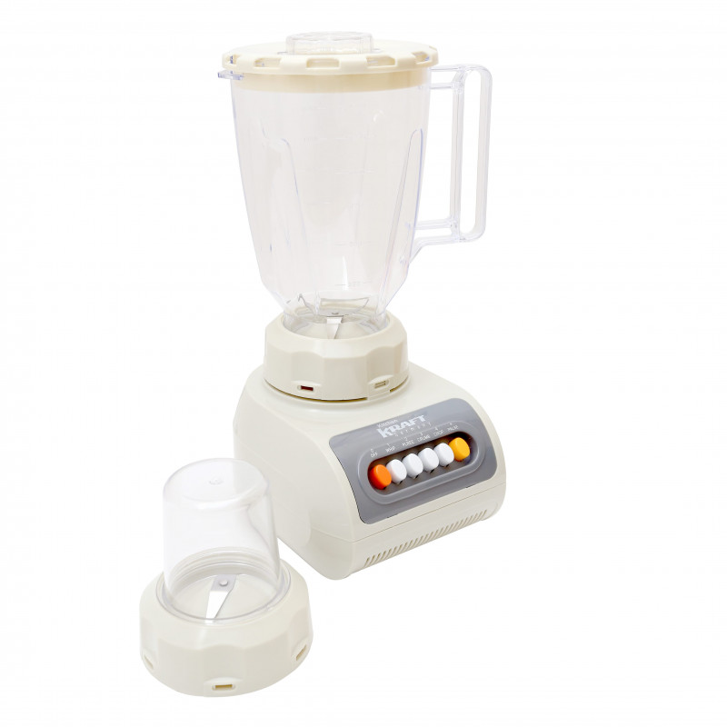 Электроблендер KitchenKraft K26 Данный блендер Kitchen Kraft K26 предназначен для ежедневного приготовления разнообразных блюд. С его помощью можно готовить свежевыжатые соки, домашние супы или создавать питательные фруктовые коктейли. Двигатель мощностью 350 Вт, широкий выбор режимов скоростей и уникальный режущий блок делают возможности блендера безграничными! 4 режимов скорости и импульсный режим Потребляемая мощность 350 Вт Материал Пластик Стеклянный кувшин 1,5 л. Стакан-блендер на 150мл.