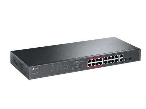 16-port 10/100M TP-Link PoE+ Switch, TL-SL1218MP, steel case 16 портов RJ45 10/100 Мбит/с PoE+, 2 гигабитных порта RJ45 и 2 гигабитных комбо SFP-слота Передача данных и электропитания на расстояние до 250 м в режиме Extend, предназначенного для систем видеонаблюдения Режим приоритетности для портов 1-8 для гарантии качества таких приложений, как видео-мониторинг Поддержка PoE+ с общим бюджетом 192 Вт и до 30 Вт на порт PoE Прост в использовании, не требует настройки