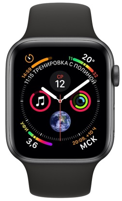 Apple Watch 4 44mm Space Gray Aluminum Case with Black Sport Band, MU6D2 GPS, Gray