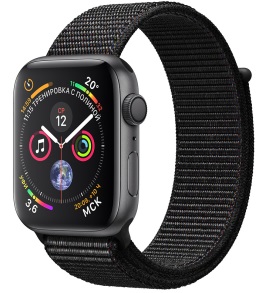 Apple Watch 4 44mm Space Gray Aluminum Case with Black Sport Loop, MU6E2 GPS, Gray