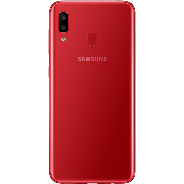Смартфон Samsung Galaxy A20 Red смартфон с Android 9.0 поддержка двух SIM-карт экран 6.4", разрешение 1560x720 двойная камера 13 МП/5 МП, автофокус память 32 Гб, слот для карты памяти 3G, 4G LTE, Wi-Fi, Bluetooth, NFC, GPS, ГЛОНАСС объем оперативной памяти 3 Гб аккумулятор 4000 мАч вес 169 г, ШxВxТ 74.70x158.40x7.80 мм