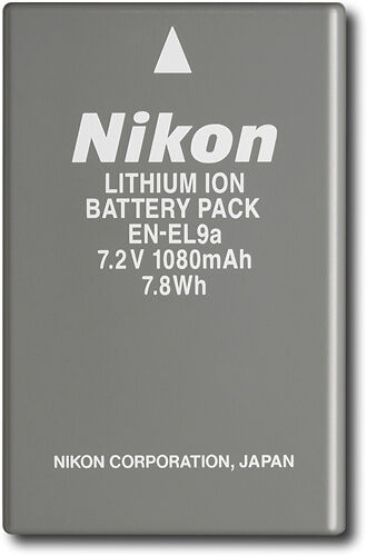 Аккумуляторная батарея Nikon EN-EL9a Аккумулятор для цифровой камеры Nikon EN-EL9a поможет вам продолжить съемку, когда оригинальная батарея полностью разряжена. Благодаря аккумулятору энергии 1080 мАч этот аккумулятор для цифровых фотокамер Nikon позволяет делать более 200 снимков без подзарядки. Nikon EN-EL9a предназначен для использования с цифровыми зеркальными фотокамерами Nikon D5000, D3000, D40 и D60. Итак, приобретите себе этот аккумулятор для цифровых фотокамер Nikon - идеальный компаньон для продолжительной съемки вне помещения. Марка Nikon