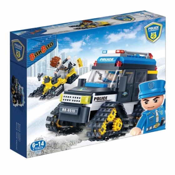 Kонструктор BanBao New Police - 315 blocks (7007) Полицейский снегоход был специально разработан для ловли жуликов в холодных условиях. Такой автомобиль без труда преодолевает не только снежные и ледяные преграды, но и обычные дороги в грязи. Поймайте мошенника, который пытается сбежать на своем снегоходе и привезите его в тюрьму! Набор конструктора включает в себя фигурки полицейского и грабителя, а также два вида снегоходов. Производитель BanBao Модель New Police - 315 blocks (7007) Модель:7007 Фигурки ToBees:2 персонажа