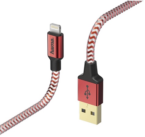 Hama "Reflective" Charging/Data Cable, Lightning, 1.5 m, red Элегантный и прочный алюминиевый корпус Специально оптимизированные внутренние проводники, которые идеально подходят для зарядки смартфонов и планшетов Прочные заглушки и литые разгрузочные устройства, высокая механическая прочность Позолоченный штекер с низким контактным сопротивлением для безопасной передачи сигнала