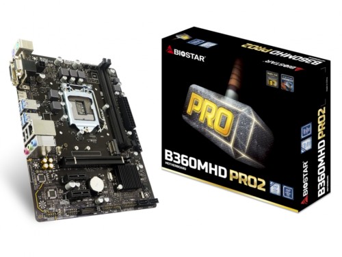 Материнская плата Biostar B360MHD PRO2, Socket 1151, Intel® B360 (9th/8th Gen CPU), Dual 2xDDR4-2666, CPU Intel graphics, VGA, DVI-D, HDMI, 1xPCIe X16, 4xSATA3, 1x M.2 slot, 2xPCIe X1, ALC 887 7.1 HDA, GbE LAN, 6xUSB3.1, mATX Socket LGA 1151 Тип поддерживаемой памяти DDR4 Количество слотов памяти 2 PCI Разъёмы 1xPCIe X16, 1x M.2 slot, 2xPCIe X1 Видео порты VGA, DVI, HDMI Тип Аудиовыхода 3 Порта Порты ALC 887 7.1 HDA, GbE LAN, 6xUSB3.1 Форм-фактор Micro-ATX Количство портов SATA 3, Портов 4.