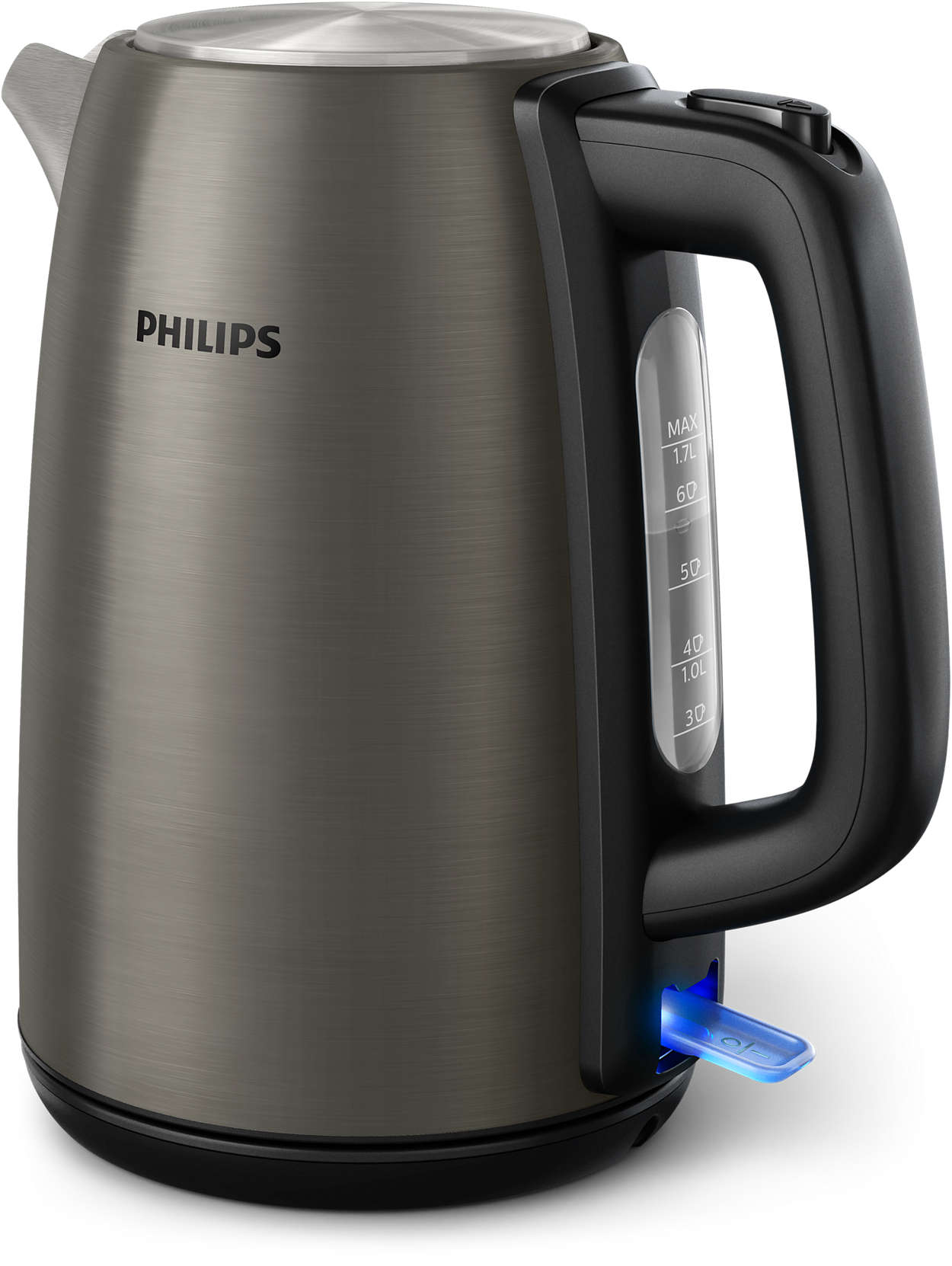 Электрочайник Philips HD9352/80, inox titan объем 1.7 л мощность 2200 Вт. индикация включения закрытая спираль установка на подставку в любом положении стальной корпус