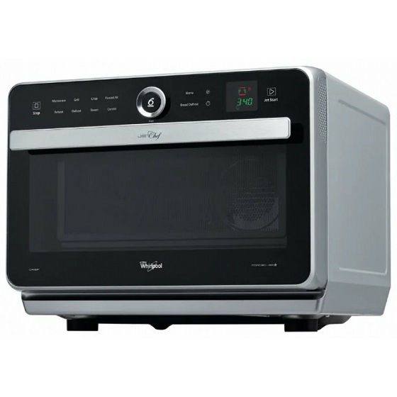 Микроволновая печь Whirlpool JT469SL, black-silver отдельно стоящая микроволновая печь объем 33 л мощность 1000 Вт гриль электронное управление тактовые и кнопочное переключатели дисплей система равномерного распределения микроволн защита от детей