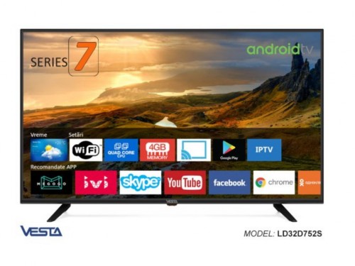 Телевизор Vesta LD32D752S/IPTV Ready Диагональ экрана 32 Разрешение экрана 1366x768 (HD) Поддержка Smart TV Есть Операционная систем Android OS Частота, Гц 200 Тип матрицы TN USB 2 Динамики, Вт 10 Особенности WI-FI, Ethernet