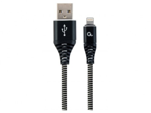 Blister Lightning 8-pin/USB2.0, 1.0m Cablexpert Cotton Braided Black/Wnite, CC-USB2B-AMLM-1M-BW