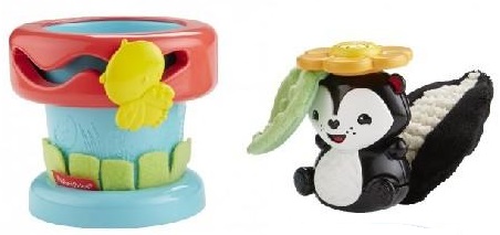 FP Olita Magica Fisher-Price Игрушка "Волшебный горшочек" Поиграйте в прятки с веселым скунсиком! Нажмите на цветок, и скунсик с веселым звяканьем выглянет из горшка, нажмите еще раз - и он сразу спрячется. Плюшевый хвостик шелестит, мягкая травка и листочек развивают тактильные чувства. Жучок, ползающий по горшку, будет развивать мелкую моторику малыша, а приятный аромат ванили - стимулировать органы обоняния. Да, он действительно пахнет! Рекомендуемый возраст: 3 месяца +