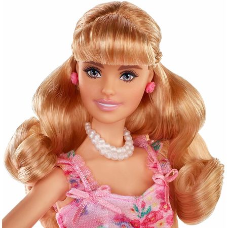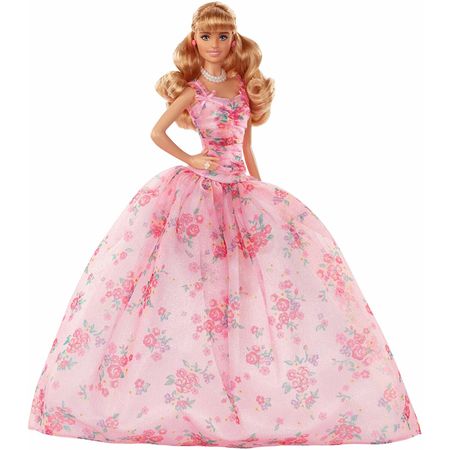 Barbie Editie de Lux "Birthday Wishes" Кукла Barbie "Пожелания ко дню рождения" Коллекционная кукла "Пожелания ко дню рождения" выглядит просто потрясающе. У неё русые волосы, голубые глаза и длинные реснички. Барби одета в пышное розовое платье с цветочным принтом, а на её шее красуется жемчужное ожерелье. У куклы мягкие волосы, которые можно расчесывать, подвижные руки, ноги и голова, что сделает игру еще интересней. Рекомендуемый возраст: 6 лет +