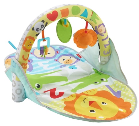 FP Covoras 2 in 1 Fisher-Price "Развивающий коврик" 2 в 1 Мягкий коврик оформлен в ярких цветах и имеет 2 способа игры - поднимите арку для игры лежа на спинке или опустите ее для игры на животике. Когда ребенок подрастает, ему будет очень интересно исследовать арку с тремя съемными игрушками и двумя разными дизайнами на каждой стороне для развития зрения: контрастные черно-белые или цветные узоры. Коврик можно стирать в машинке и удобно хранить, опустив арку и сложив его вдвое. Размеры: 40 х 7 х 54 см Рекомендуемый возраст: от 0 месяцев