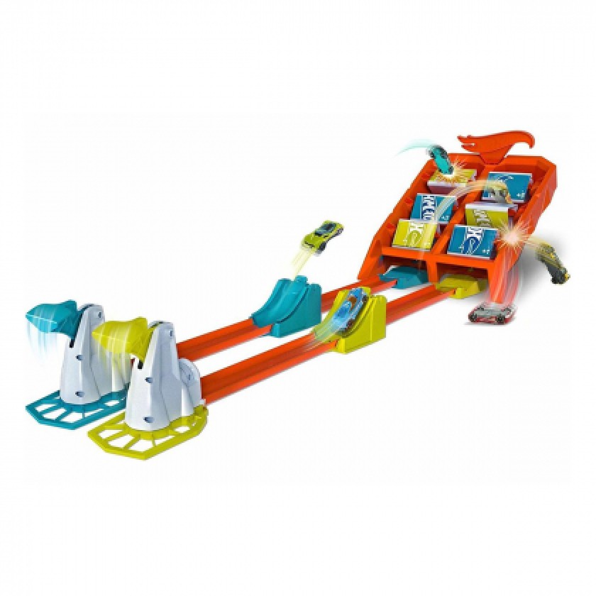 HW Set Competitie si Actiune HW Игровой набор "Суперточное попадание" Запускай машинки таким образом, чтобы как можно быстрее перевернуть плитки, чтобы они стали цвета твоей команды. Шевелись, чтобы выполнить задачу быстрее соперника! Перемещай пускатель, чтобы управлять приземлением автомобилей, или выбери защитную тактику - направляй машинки на сторону соперника, в случае его близкой победы. Присоедини трамплин к дорожкам другой стороной и запускай машинки под плитками, переворачивая их с нижней стороны. Одержать победу будет не просто! 1 машинка в наборе. Рекомендуемый возраст: 4 года +