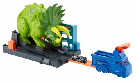 HW City Set Triceratop HW Игровой набор "Опасный Трицератопс" Этот увлекательный набор предназначен для игры-повествования, основанной на героических поступках и навыках. Сложная задача детей состоит в том, чтобы остановить атаку гигантского трицератопса, запуская в него автомобиль, чтобы сбить его с ног! Набор включает гигантского трицератопса на главной улице Hot Wheels Сити, пусковую установку в виде грузовика с оранжевым треком, которая позволяет достичь сильного броска. Также набор включает один автомобиль Hot Wheels, чтобы уничтожить трицератопса и спасти Hot Wheels Сити. Построй свой Hot Wheels Сити, соединяя друг с другом другие игровые наборы Сити. Игровые наборы Сити также можно соединять с оранжевыми треками и другими наборами. Комплект: 1 машинка, трицератопс Размер упаковки: 30.5 x 19 x 38 см Рекомендуемый возраст: от 4 лет